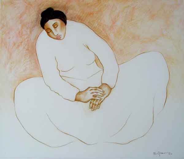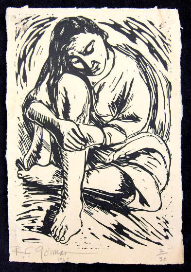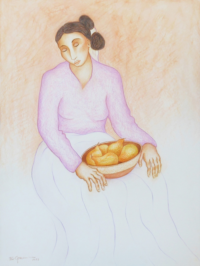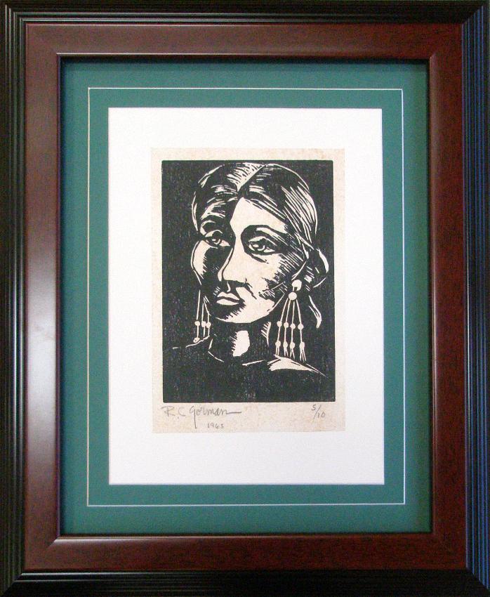 R.C. Gorman, Navajo artist, rose to prominence in the early 1970s with the emergence of the so-called "New Indian Art Movement." His simple, yet often elegant, oil pastel drawings of women, not to mention his flamboyant personality and flair for self-promotion, soon gained him national attention and a popular following. Gorman is primarily known for his original lithographs, the backbone of his market, the majority of which have been published by Western Graphics Workshop. Other media in which he has worked include oil and acrylic painting, intaglio, serigraphy, ceramics, bronze sculpture and paper casting. Numerous posters and books have been published on the artist.